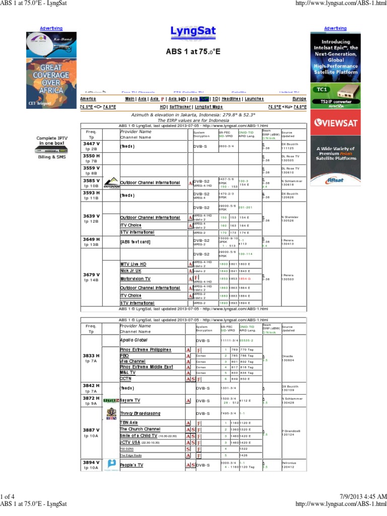 Abs 1 At 75 0 E Lyngsat Pdf Broadcasting Television Network